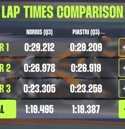 It must be noted that these are the data from Norris’s first Q3 push lap, since he abandoned his second attempt due to an early error.